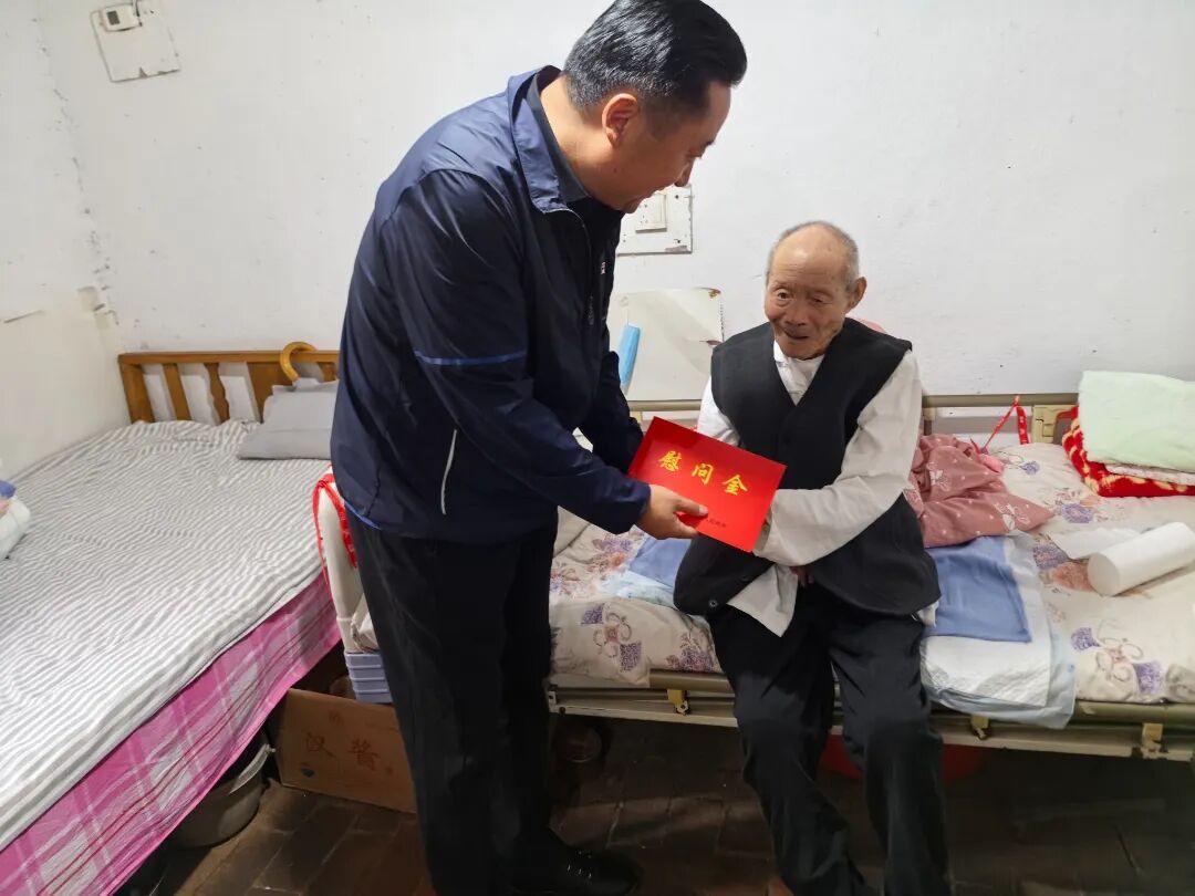在國慶、中秋雙節來臨之際,黃福常、張同信、杜飛等縣四大家領導重點走訪慰問了我縣新中國成立前加入中國共產黨的農村老黨員,向他們致以崇高敬意和誠摯問候。? ? 縣領導與老黨員促膝交談,拉家常、話發展,詳細了解他們的生活情況和身體狀況,叮囑他們保重身體,傾聽他們的意見建議,向他們轉達黨中央的關心關懷,并為他們送去慰問金。慰問中,縣領導表示,新中國成立前加入中國共產黨的農村老黨員是黨和國家的重要財富,為成武發展做出了巨大貢獻,要時刻把老黨員的冷暖放在心上,既要在政治上尊重、思想上關心,更要在生活上照顧,全面落實各項政策待遇,帶著感情、帶著責任解決他們遇到的實際困難,讓老同志們充分感受組織的溫暖,安享幸福晚年。